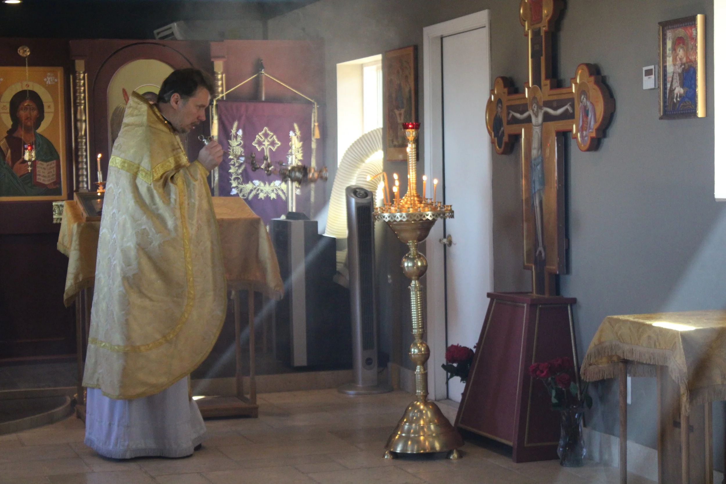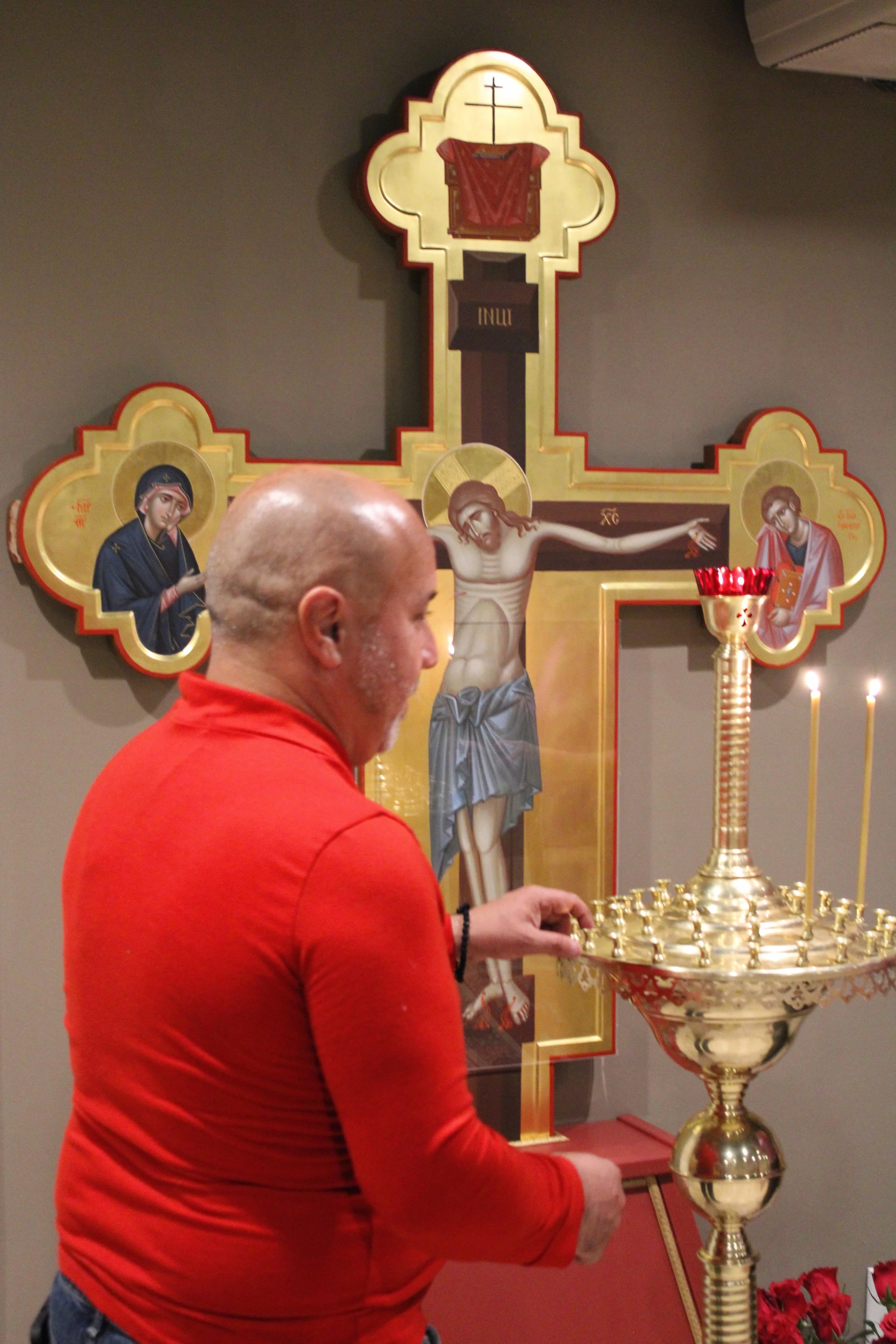 Icons are an inseparable element of our Eucharistic worship, reflecting the sacred beauty of our faith. To explore the rich symbolism of Orthodox iconography, including the significance of materials like basswood, the meaning of colors, and other elements, visit https://www.iconmuseum.org/anatomy-of-an-icon/. To learn more about Zharov’s approach to iconography and the cross installed at Holy Archangels, visit here.